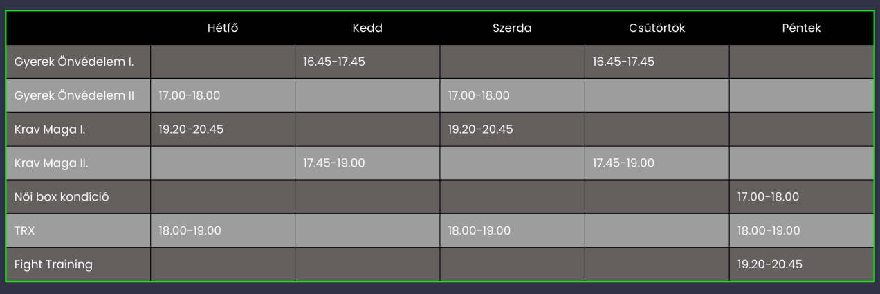 Mert nem csak edzünk, hanem a csúcsra törünk. Legyen szó önvédelemről, küzdősportról vagy a fizikumod fejlesztéséről, nálunk megtalálod a helyed.